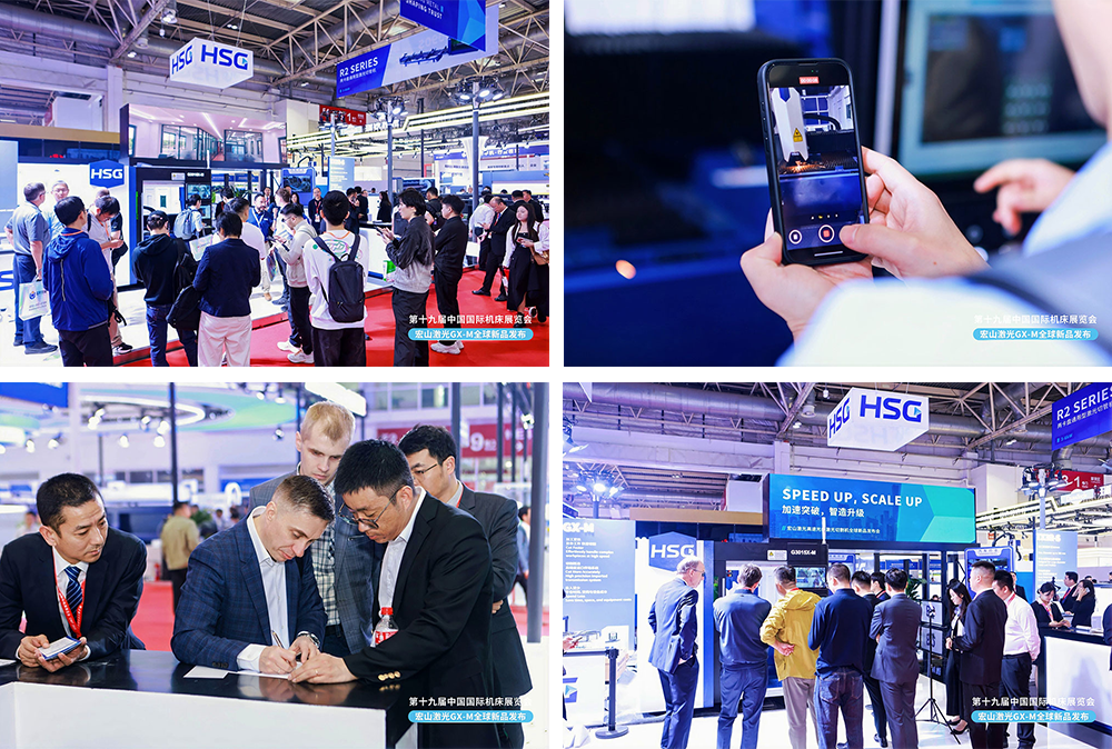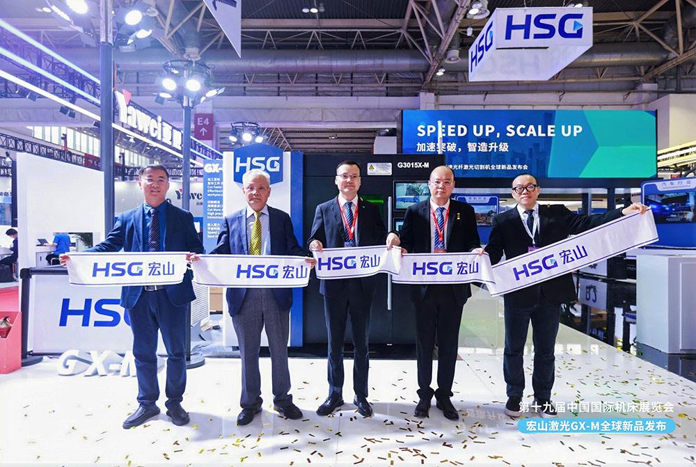 展會首日,宏山激光隆重舉行了“高速光纖激光切割機(jī)全球新品發(fā)布會”,通過線上線下雙渠道同步直播,吸引了來自全國各地的行業(yè)客戶、合作伙伴及媒體代表共同見證這一重要時刻。