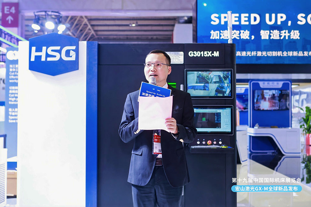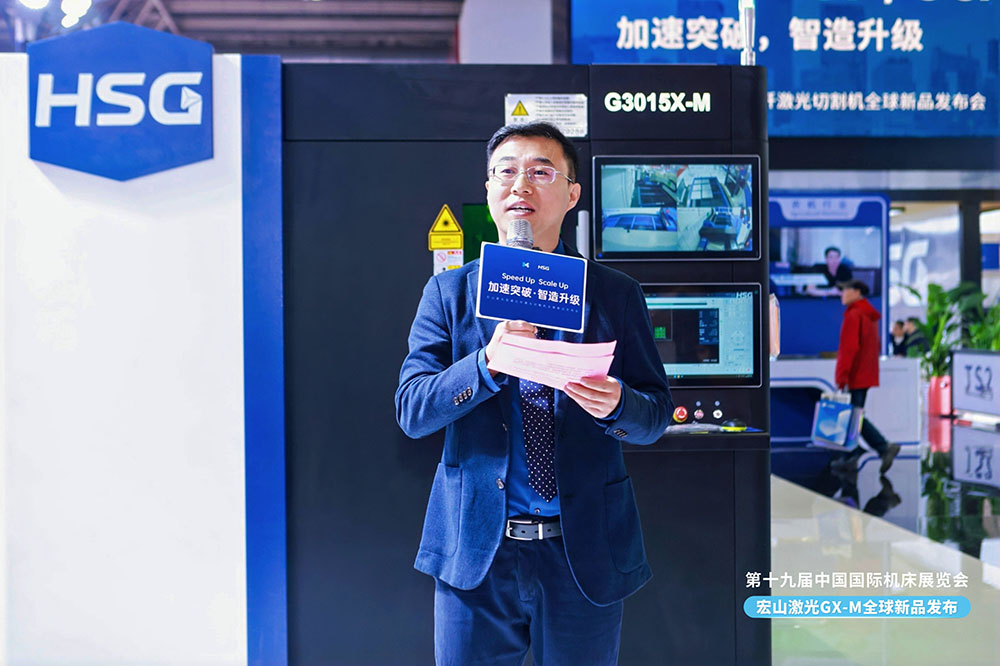 中國機(jī)床工具工業(yè)協(xié)會執(zhí)行副理事長王黎明在致辭中表示:“宏山激光推出的G3015X-M高速光纖激光切割機(jī),體現(xiàn)了中國激光裝備在性能突破與智能化方向的強(qiáng)勁創(chuàng)新力。其持續(xù)推動綠色制造與高質(zhì)量發(fā)展方向的技術(shù)成果,不僅滿足了全球客戶對高效裝備的迫切需求,更進(jìn)一步提升了中國品牌在國際市場上的影響力與話語權(quán)。”