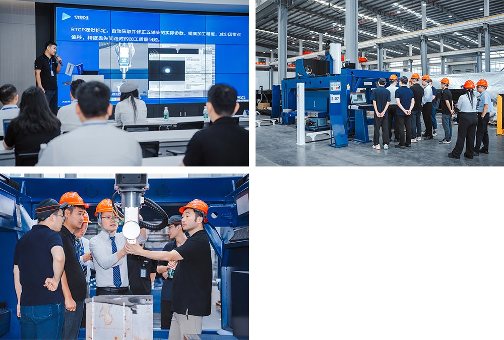 FACut-C三維五軸切割系統(tǒng)聯(lián)合發(fā)布會結(jié)束后,嘉賓們移步工廠參觀區(qū),親身體驗設(shè)備在實際生產(chǎn)中的應(yīng)用。現(xiàn)場演示展示了的高效切割與精準控制,嘉賓們直觀感受到全新Freedom三維五軸切割機在復雜工況下的卓越性能與穩(wěn)定性,進一步增強了對產(chǎn)品實力的認可和對國產(chǎn)智能制造的信心,為未來合作打下了堅實基礎(chǔ)。